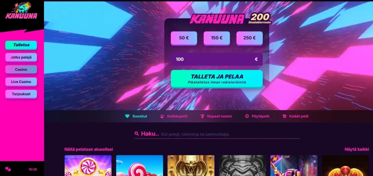 - Urheiluvedonlyöntiä ei ole tarjolla