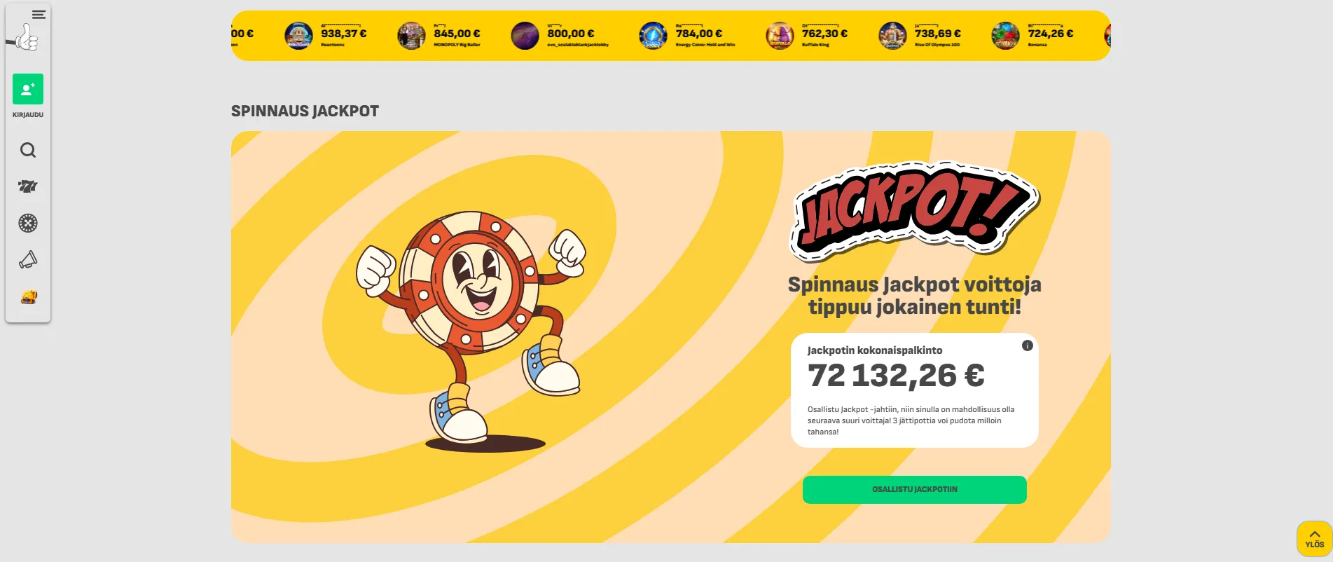 Vuoden ympäri pyörivät turnaukset nostavat jackpotit miljooniin. Curacaon lisenssi mahdollistaa joustavat kampanjat, mutta voittojen verotus jää pelaajan vastuulle. Tämä kokonaisuus sopii niille, jotka arvostavat helppoutta, vaihtelua ja kotimaista palvelua.