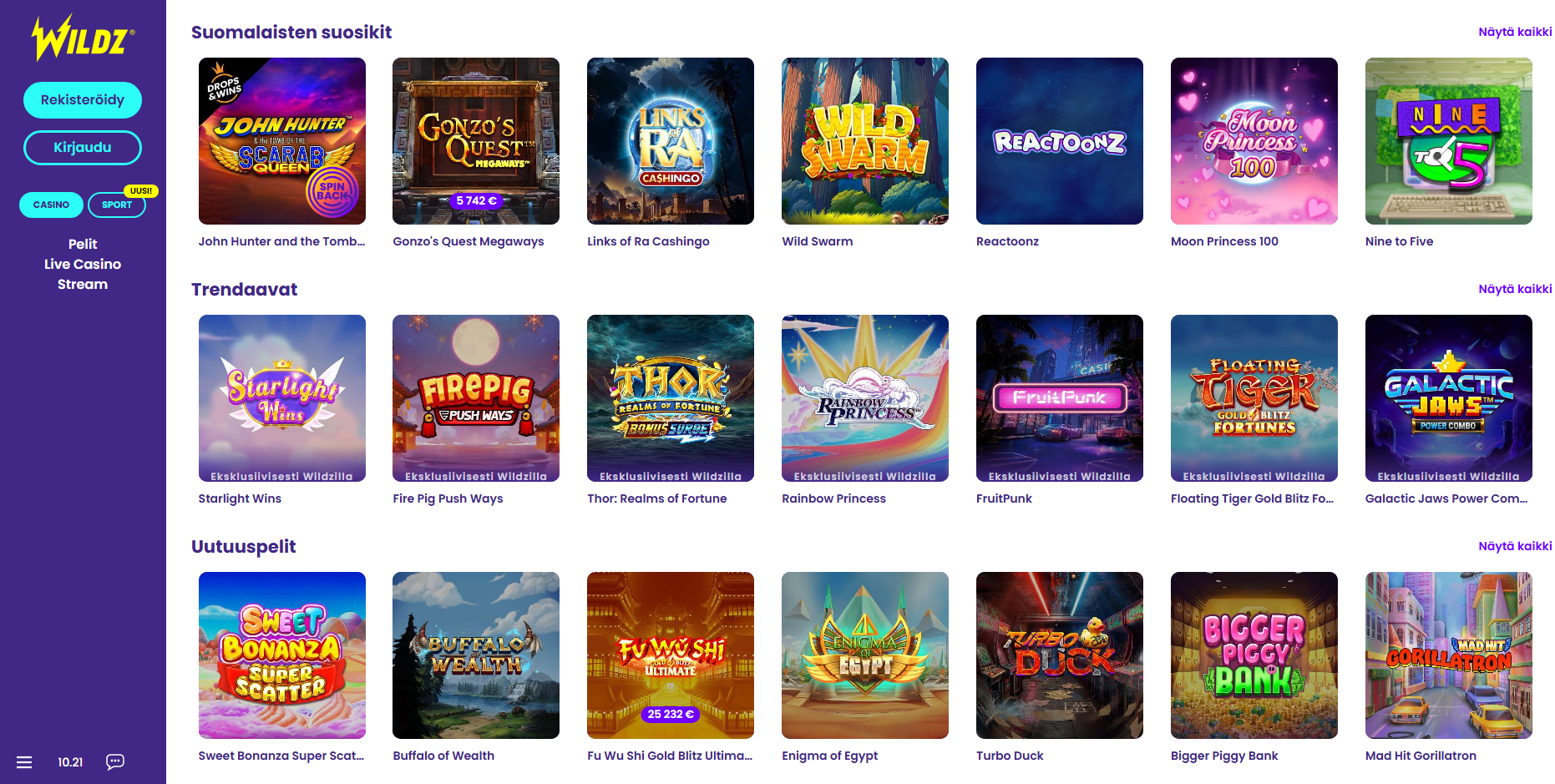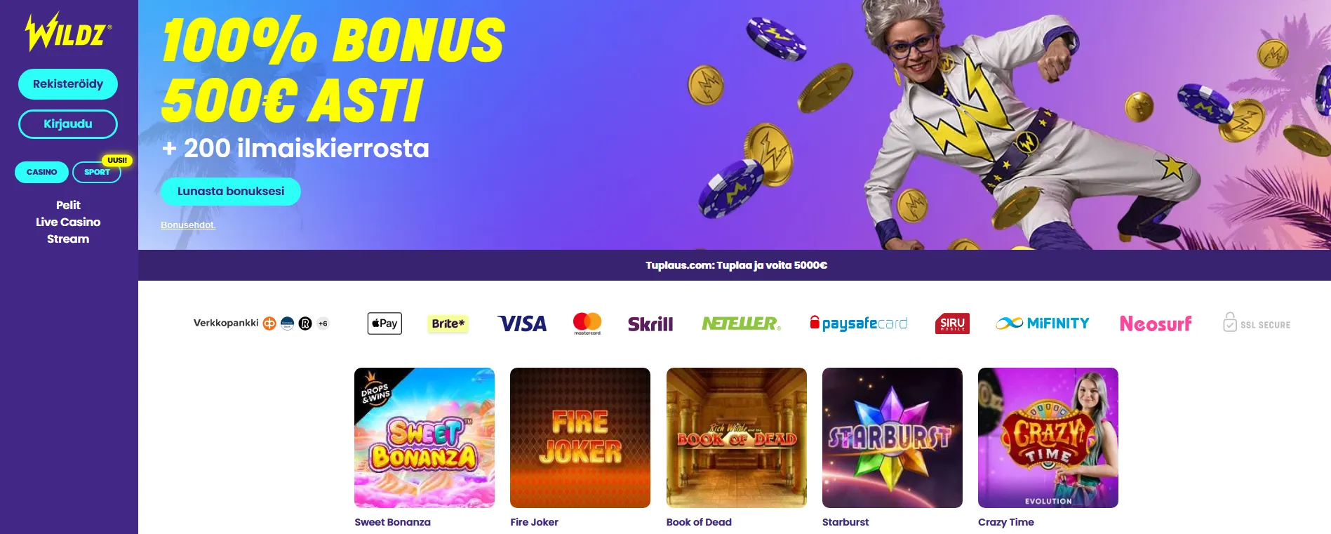 - Yksi kukkaro riittää: kolikkopelit, live‑pöydät ja vedonlyönti käyttävät samaa saldoa.